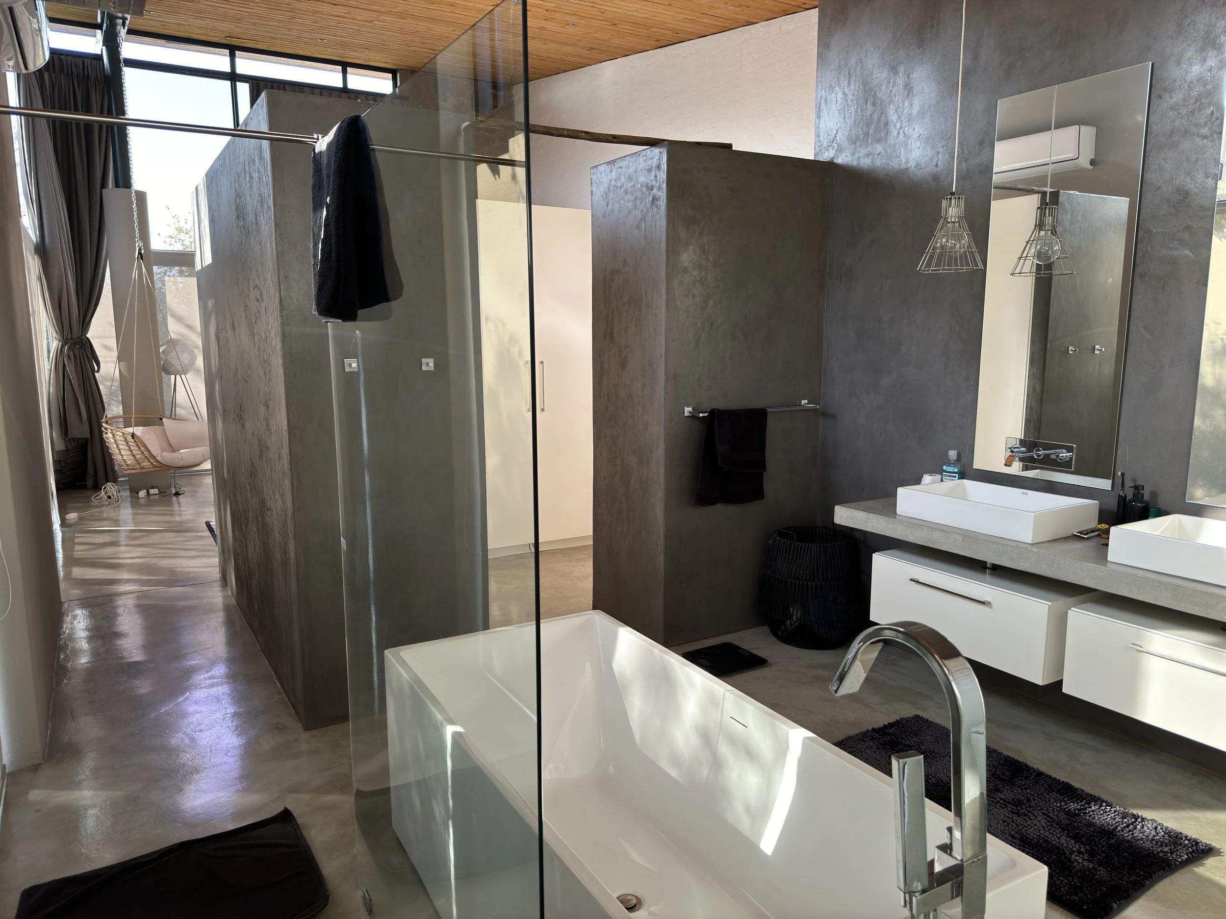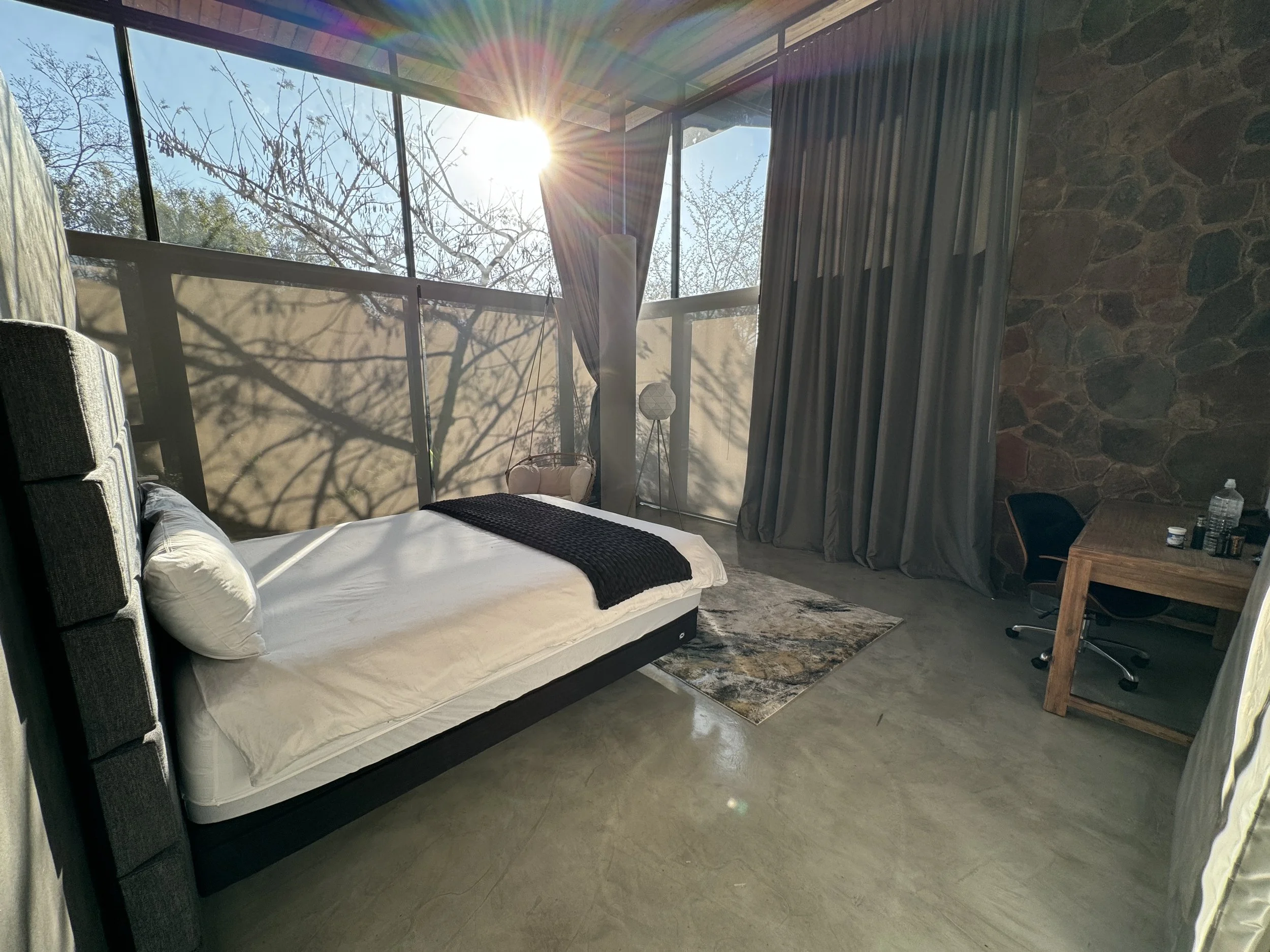 Room 1 is the largest room we offer, providing the ultimate in comfort and space. It features a luxurious queen bed, generous closet space, and a spacious bathroom with both a shower and a tub, plus dual sinks. Enjoy the convenience of A/C and a desk for working. Floor-to-ceiling windows offer stunning views and abundant natural light. Perfect for those who want extra room to relax and unwind.